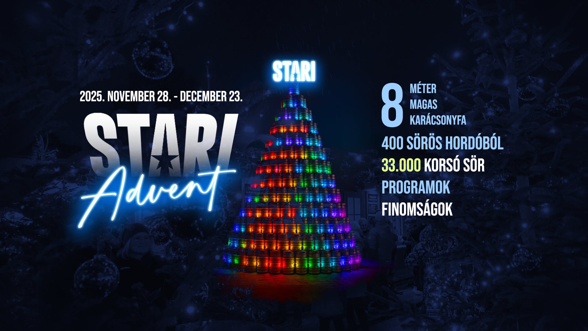 Az idén 33 éves Stari sörfőzde több, mint 400 db söröshordóból álló „Karácsonyfával” ünnepli, hogy krisztusi korba lépett. A 400 db hordó sem hangzik rosszul, de ha azt mondjuk, hogy ez összesen 33.000 korsó sört jelent, még izgalmasabbnak tűnik. A 8 méter magas hordófa ünnepi fényei elvarázsolnak, miközben Téli Csodaország italait kortyolgatod. Lesz itt minden mi szem-szájnak ingere: kisüzemi sör, forralt bor, krampampuli 80%-os Spitz rummal, Bombardino, forró csoki, sült gesztenye és még sok finomság! Zenére táncoló fények, selfie pont, jó hangulat! Mi kell még? Természtesen a legfontosabb: TE! Az ünneplés és a szórakozás mellett gondolunk az ünnepi időszakban is nélkülözőkre, így adománygyűjtést fogunk szervezni a városi rászoruló gyermekeknek, hogy ők is átélhessék a Karácsony felemelő, örömteli hangulatát.